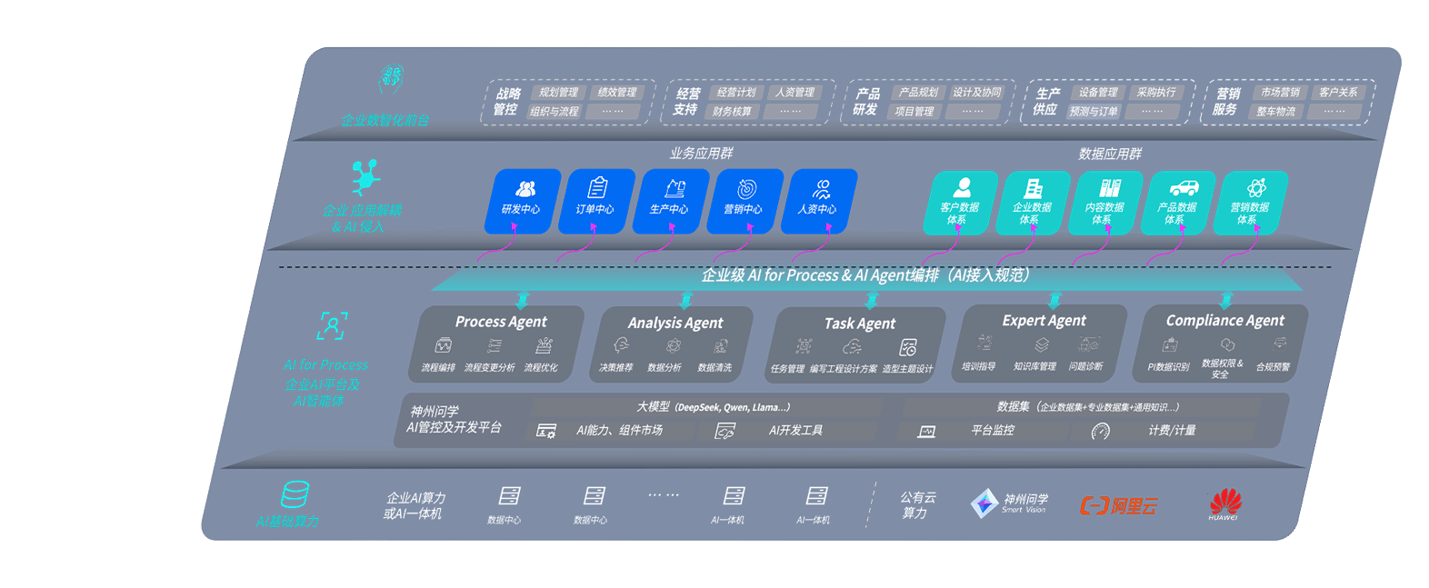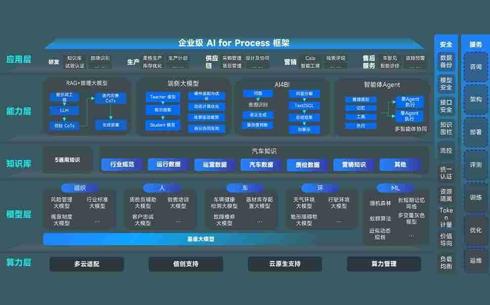端到端的一站式AI工作空间深度融合了从企业战略规划到日常经营的全流程业务板块,,,定向解决车企内部领域多、、、、部门多、、、、链条长、、、、场景碎片化等难题,,,,支持车企快速构建以AI为核心的生产力写作体系,,,实现任务执行与AI能力的无缝集成与交互